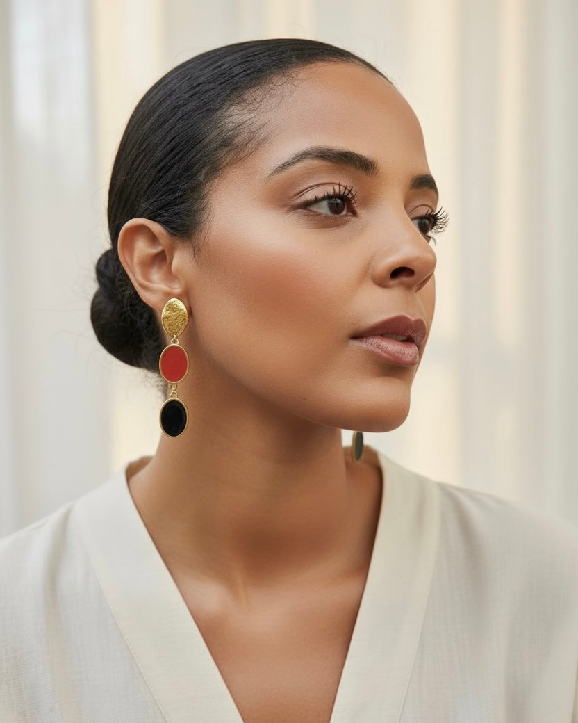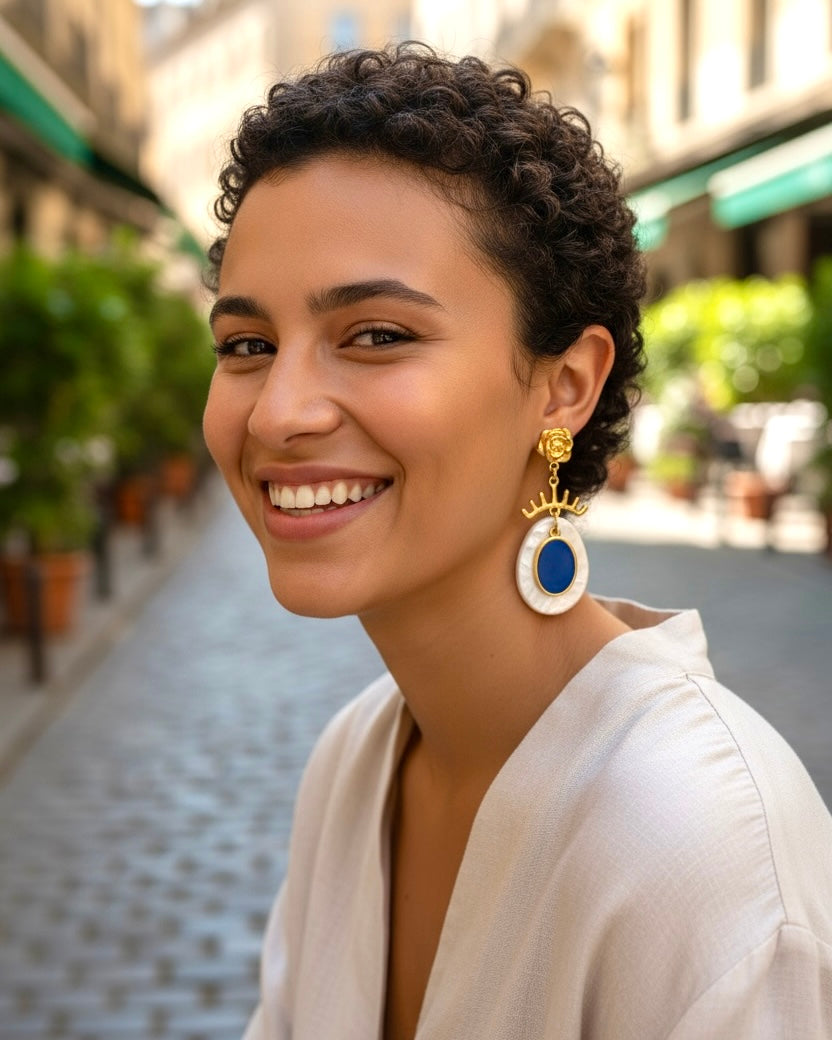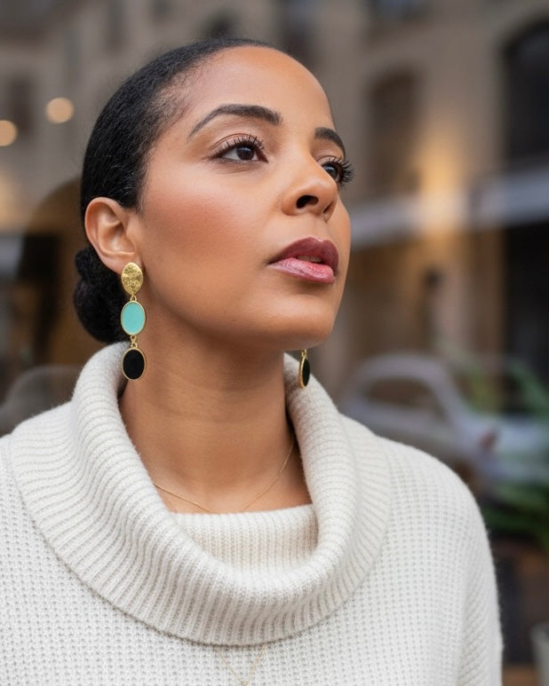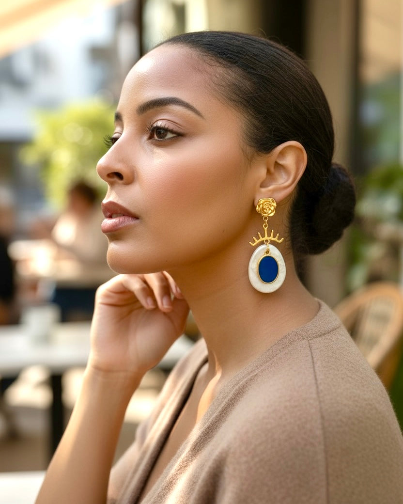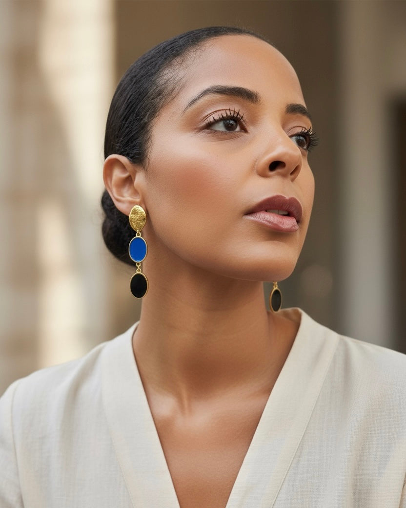 The Chic Metropole collection captures the refined spirit of contemporary sophistication a perfect balance between bold urban energy and classic grace. Each piece is meticulously crafted in 24k gold-plated brass and vibrant enamel.