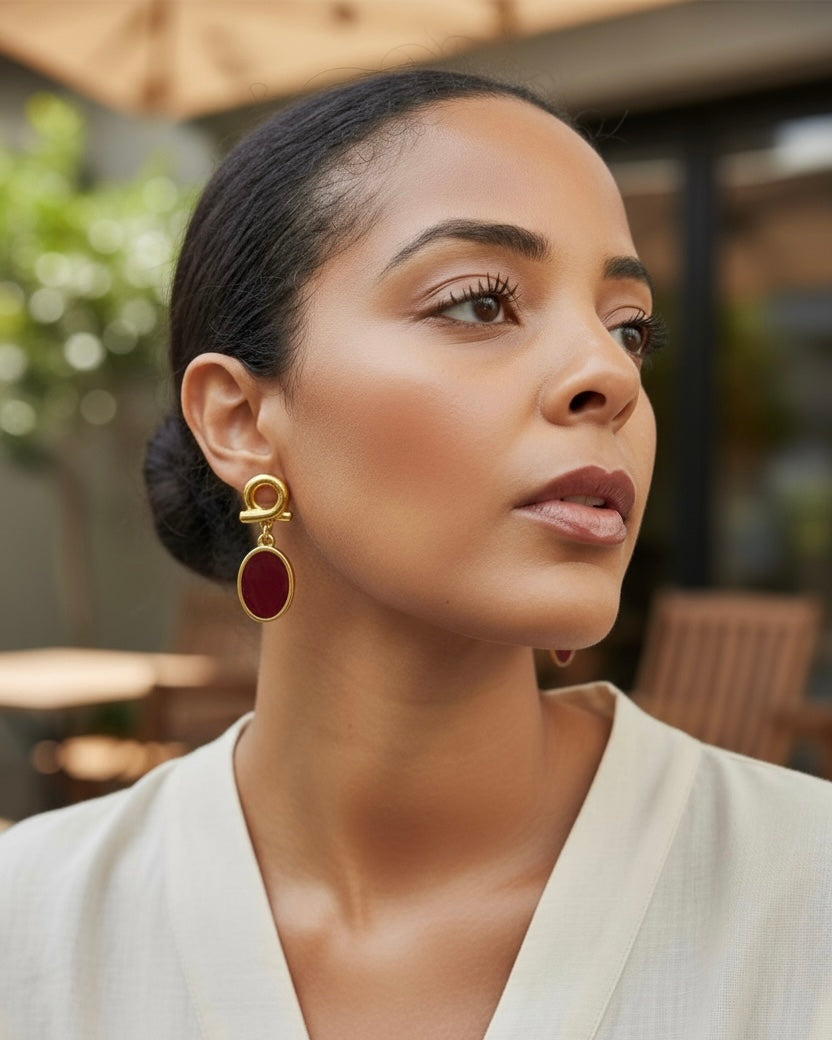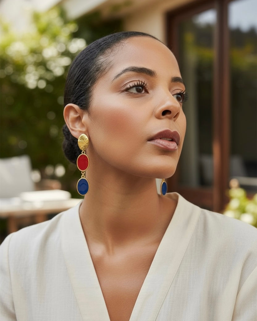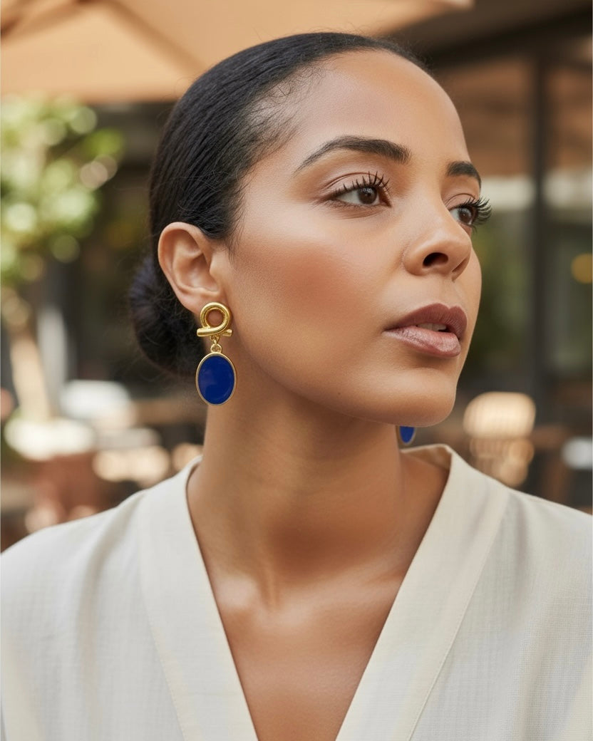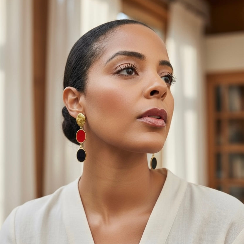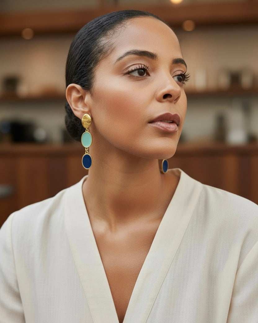 The Chic Metropole collection captures the refined spirit of contemporary sophistication a perfect balance between bold urban energy and classic grace. Each piece is meticulously crafted in 24k gold-plated brass and vibrant enamel.