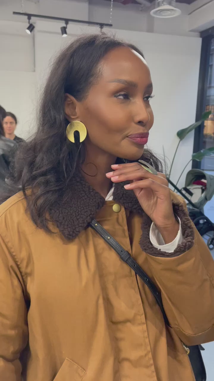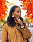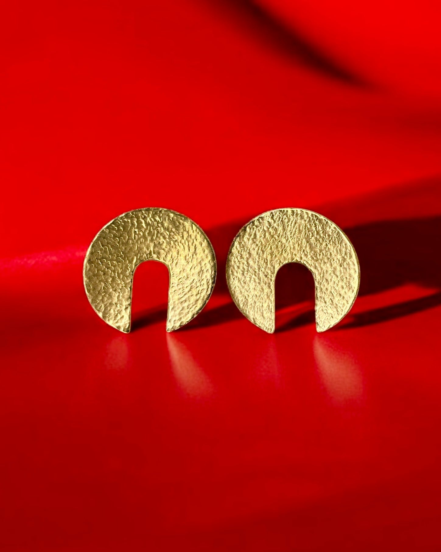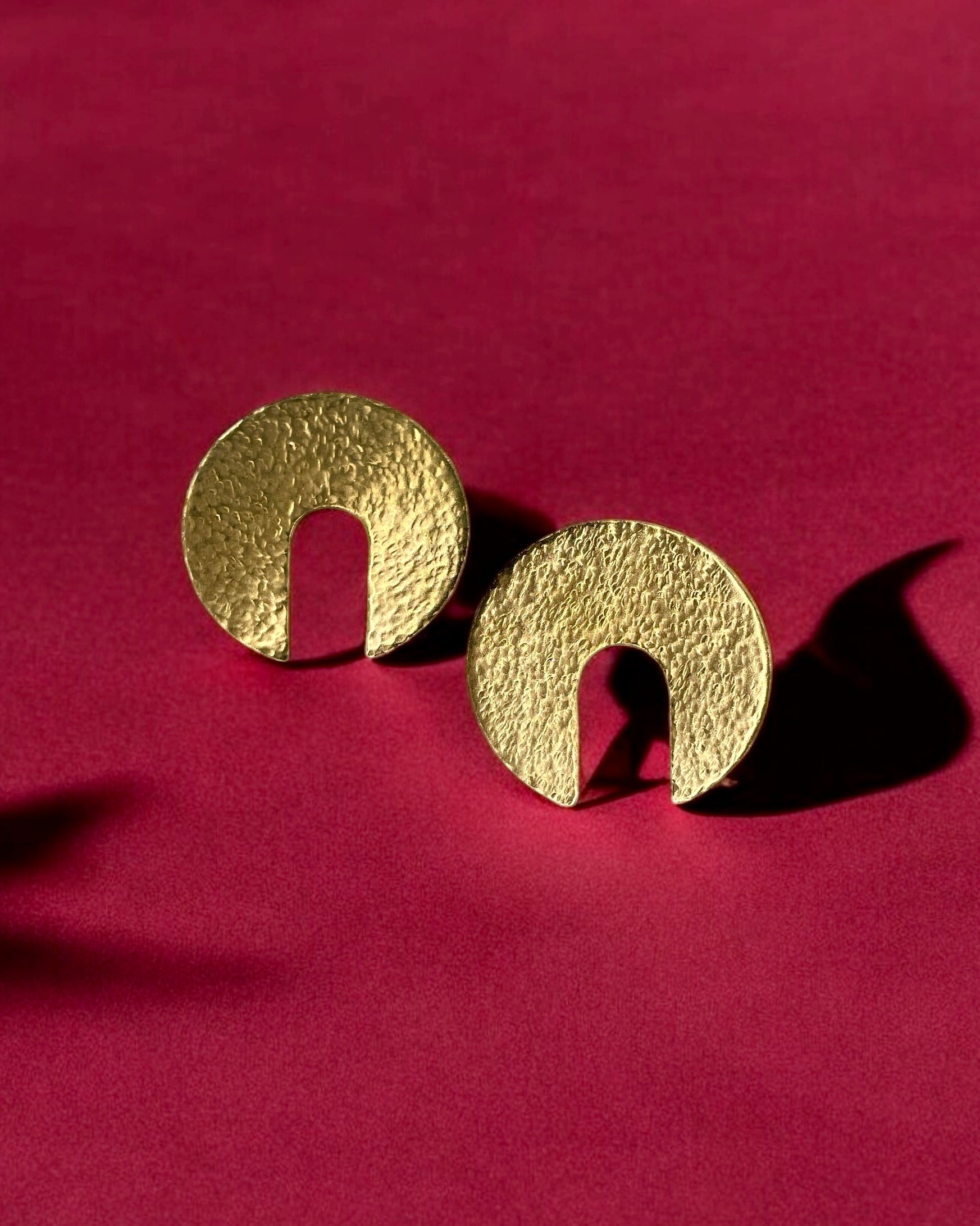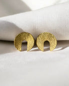 Embrace timeless elegance with the Aura Earrings from the Harmonia Collection. Their warm, versatile glow seamlessly complements both casual and formal outfits. Featuring a unique textured circular design with an open center, these earrings add a modern touch and sophistication to any look. Crafted with artisanal precision, they are a refined and essential addition to your jewelry collection.