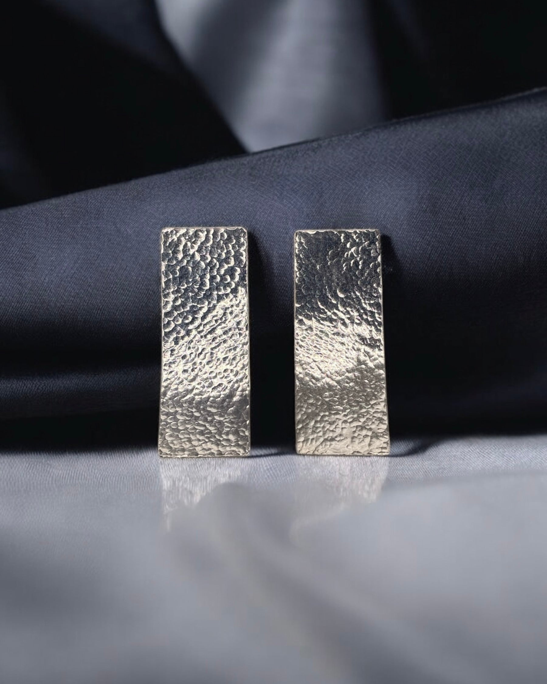 Introducing our new Harmonia Earrings, handcrafted in London from sterling silver. With their unique hammered texture, these earrings exude effortless elegance and artisanal craftsmanship. A striking addition to any jewelry collection, they bring a modern yet timeless appeal, perfect for elevating any outfit. Embrace the beauty of bespoke design with the Harmonia Earrings, a true statement of style and sophistication.