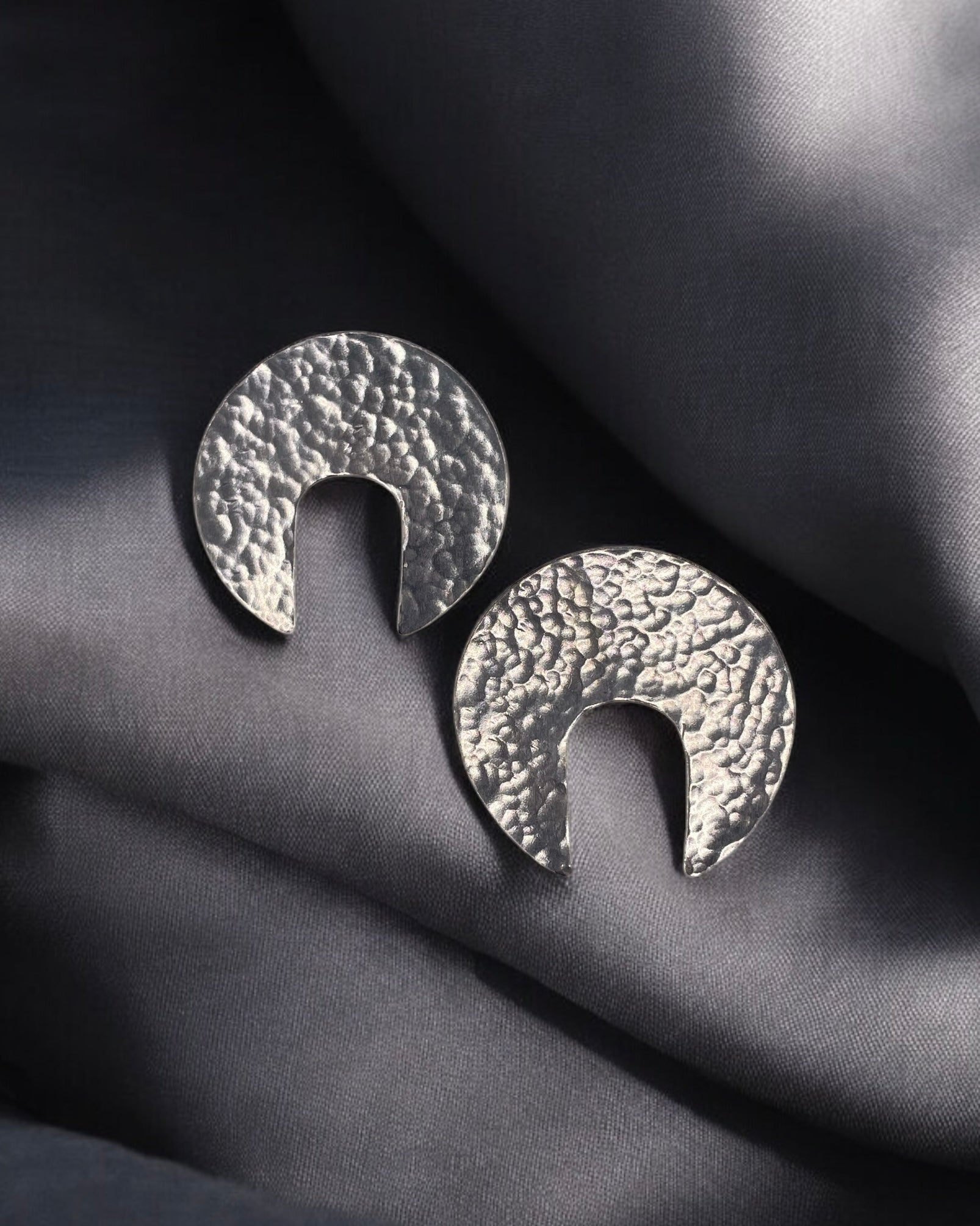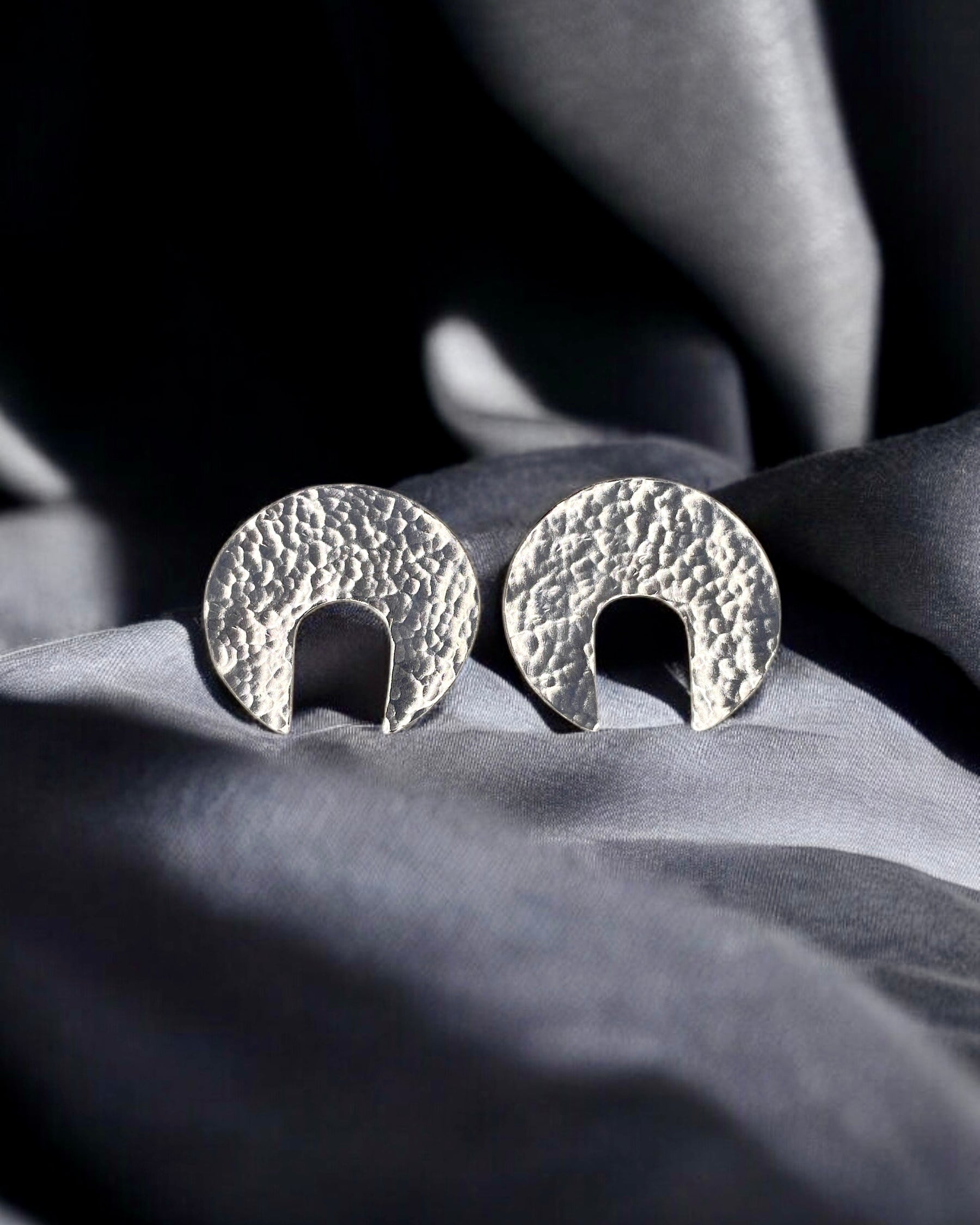 Elevate your style with the Aura Earrings from the Harmonia Collection, crafted from fine sterling silver for a sophisticated yet understated elegance. Each piece is meticulously handcrafted and finished with a unique, textured surface that captures light beautifully. The open-centered circular design gives these earrings a modern edge, perfect for adding a touch of elegance to both casual and formal looks.