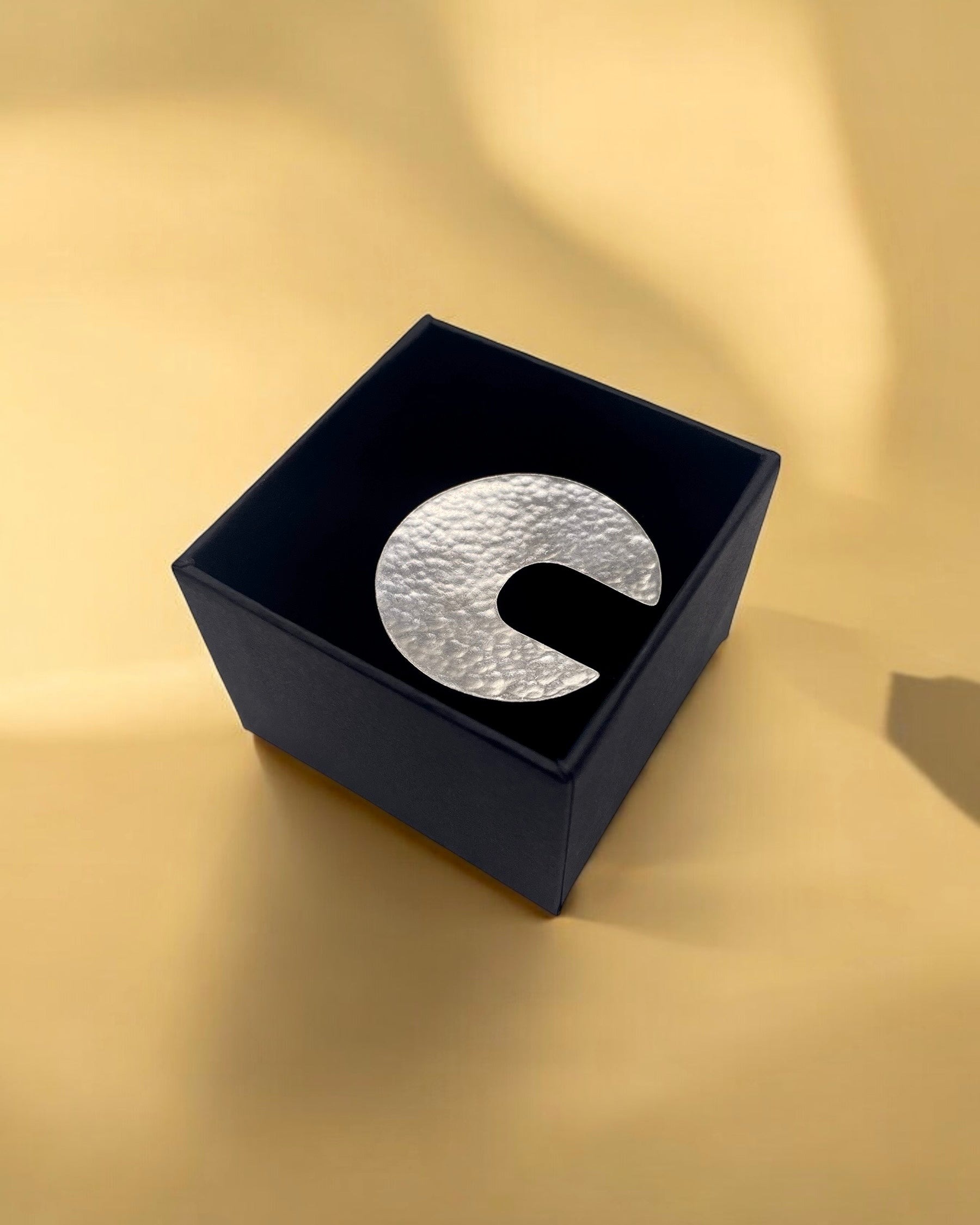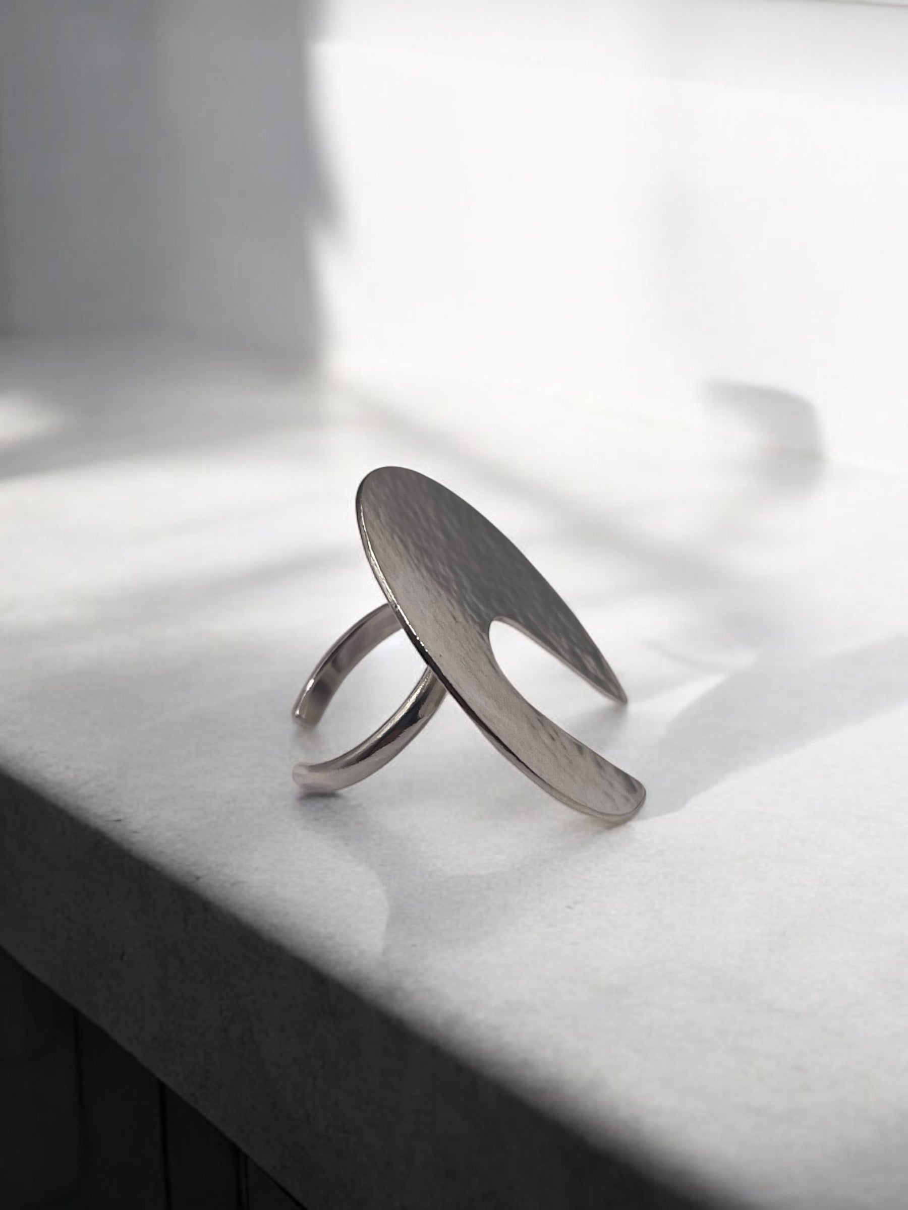 Embrace refined elegance with the Aura Ring from the Harmonia Collection, crafted in high-quality sterling silver. This distinctive piece features a striking, textured circular design with an open center, creating a modern, minimalist silhouette that’s both eye-catching and timeless. A testament to artisanal craftsmanship and contemporary style, the Aura Ring is an exquisite addition to any jewelry collection.