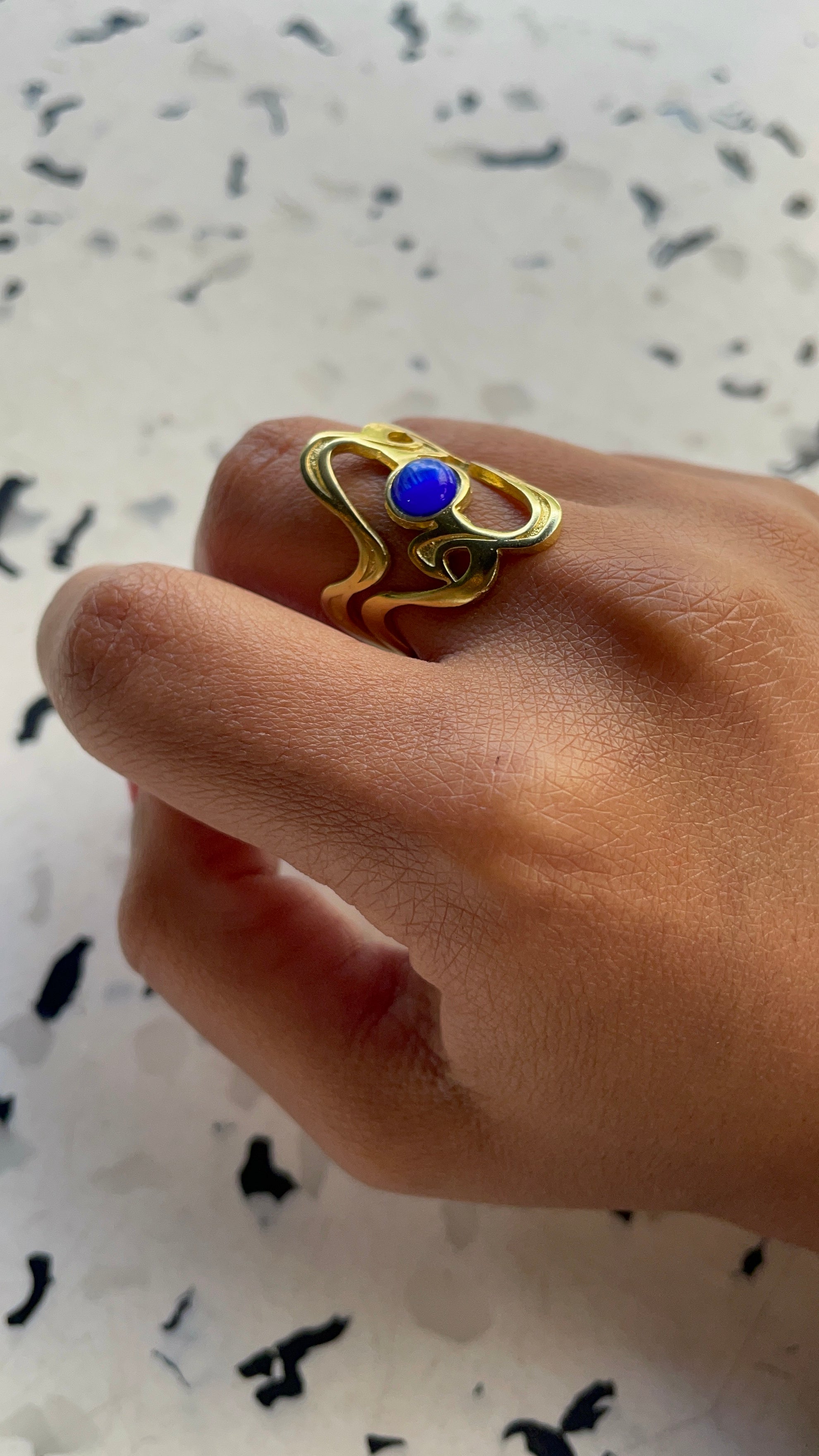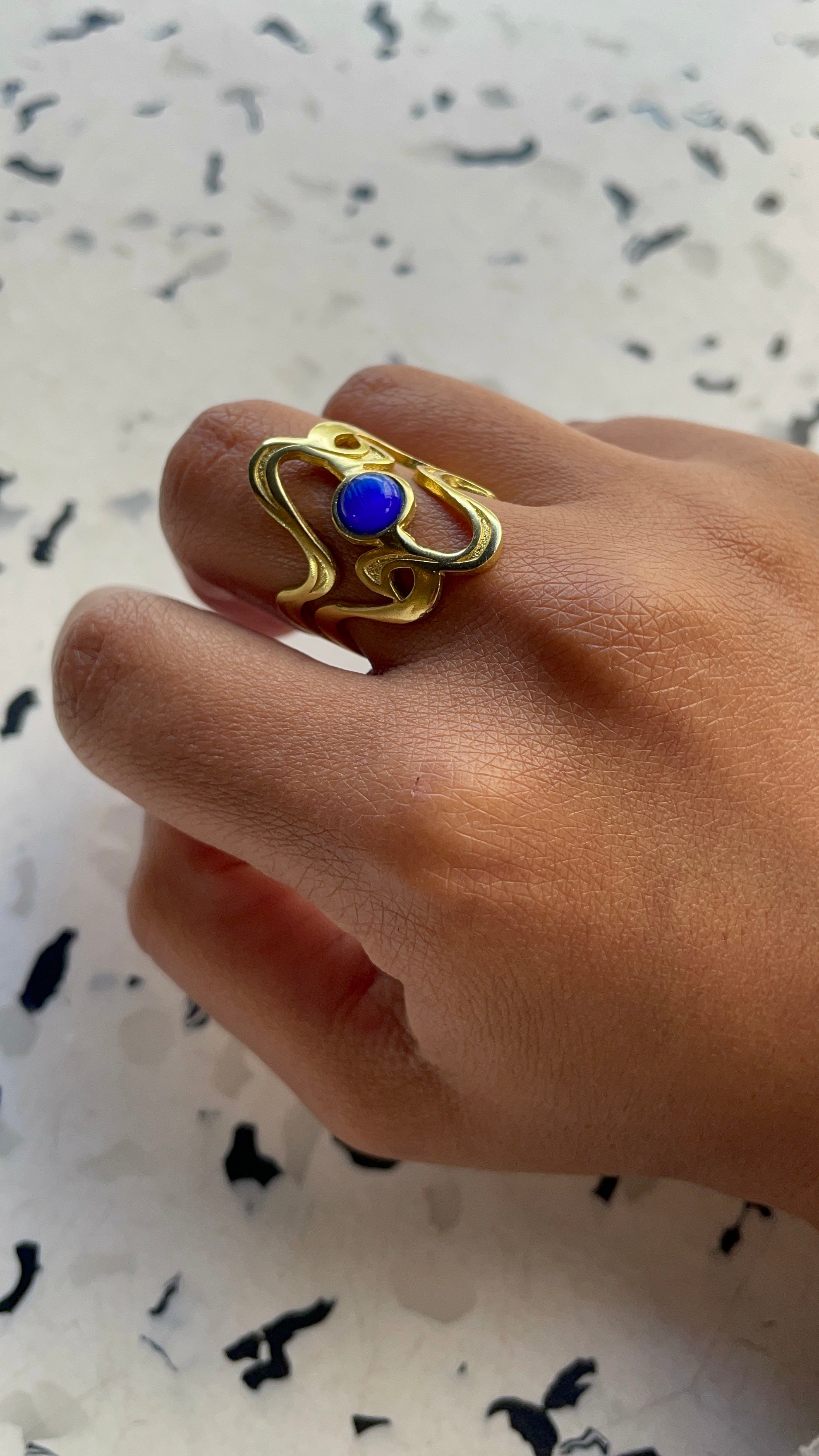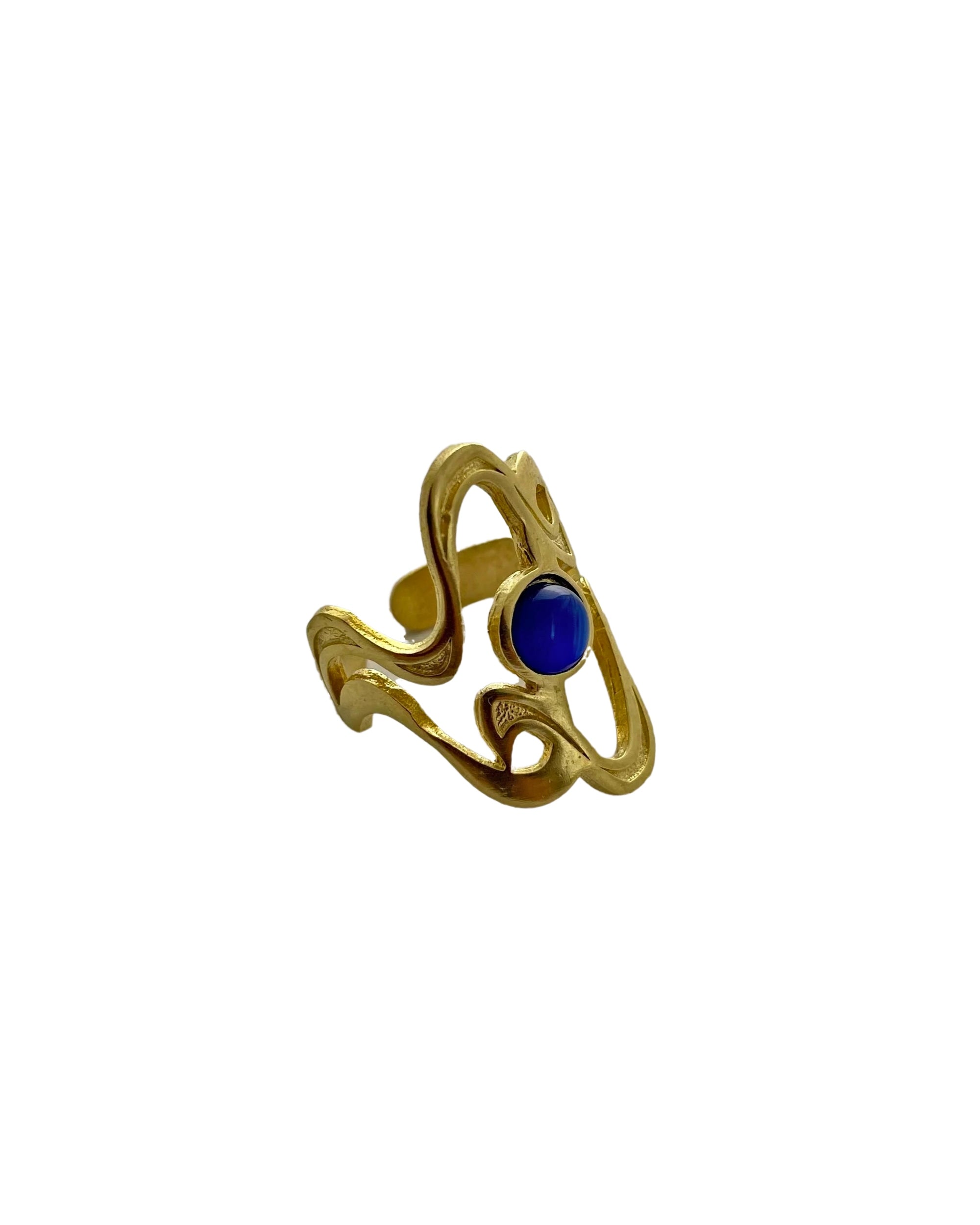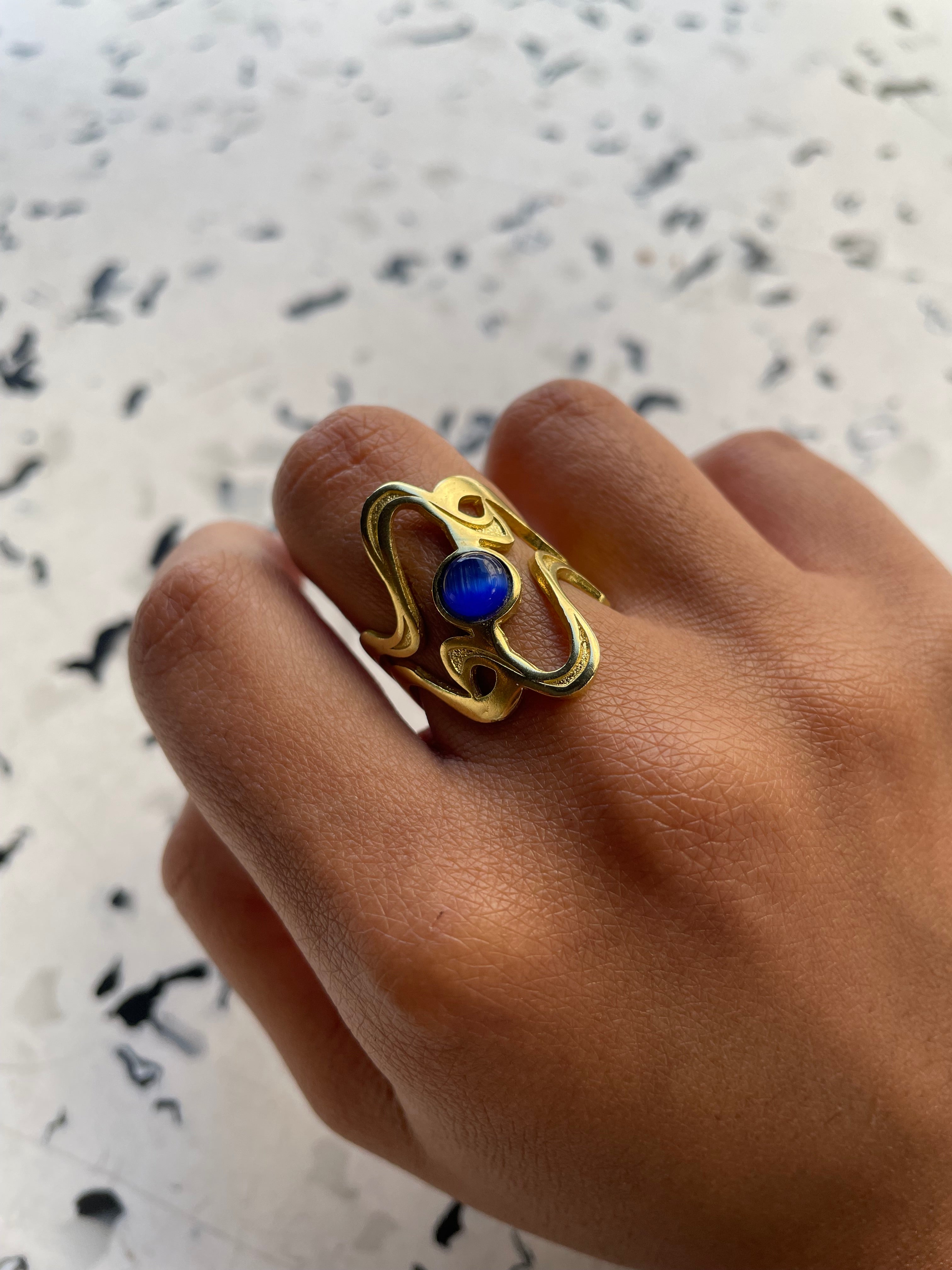 Elevate your style with our Gold-Plated Adjustable Ring featuring a stunning blue gemstone. This exquisite piece combines the timeless elegance of gold with the vibrant allure of blue, creating a versatile accessory perfect for any occasion.