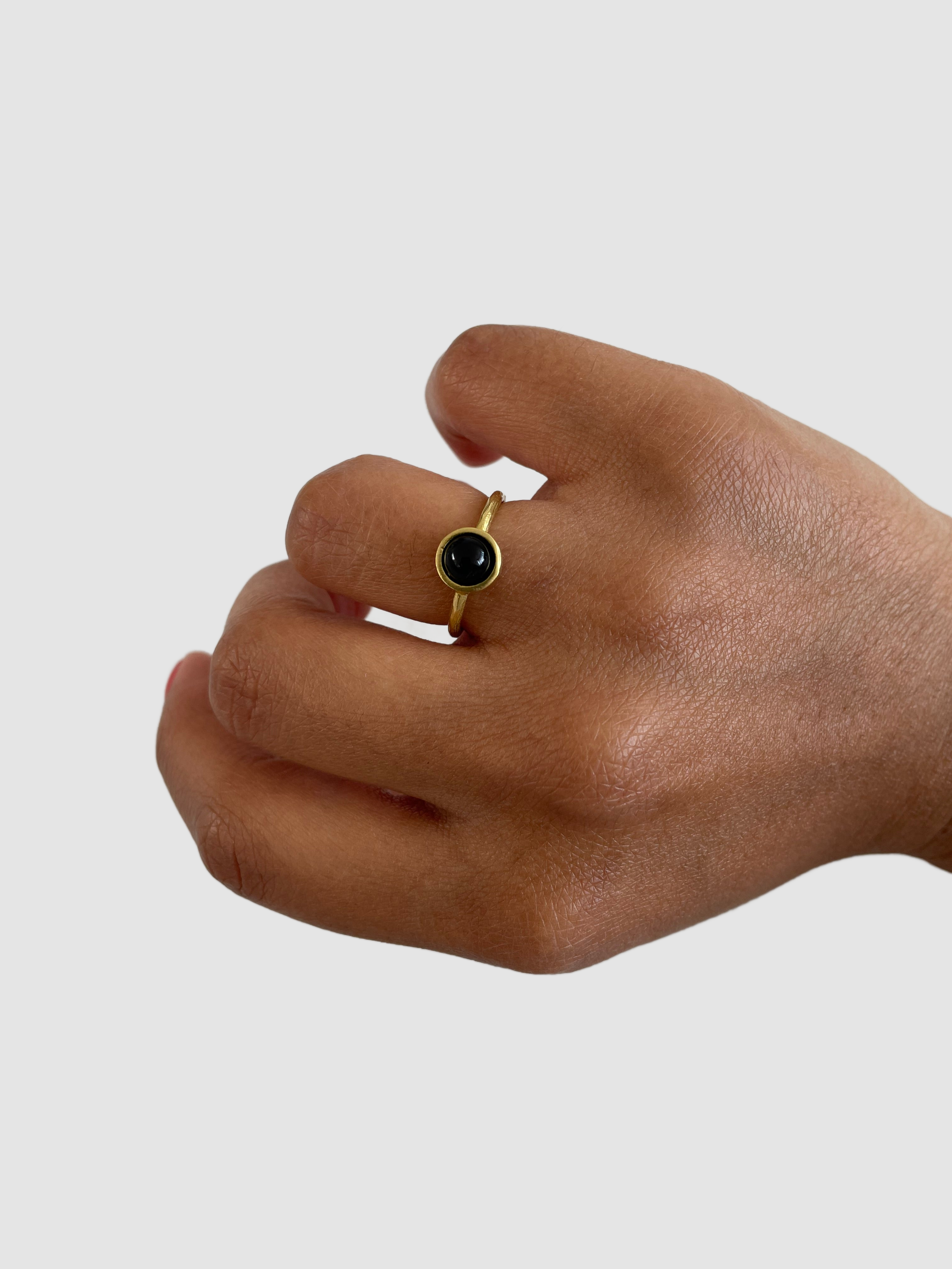 Elevate your style with our Gold-Plated Adjustable Ring featuring a stunning black gemstone. This exquisite piece combines the timeless elegance of gold with the vibrant allure of black, creating a versatile accessory perfect for any occasion.