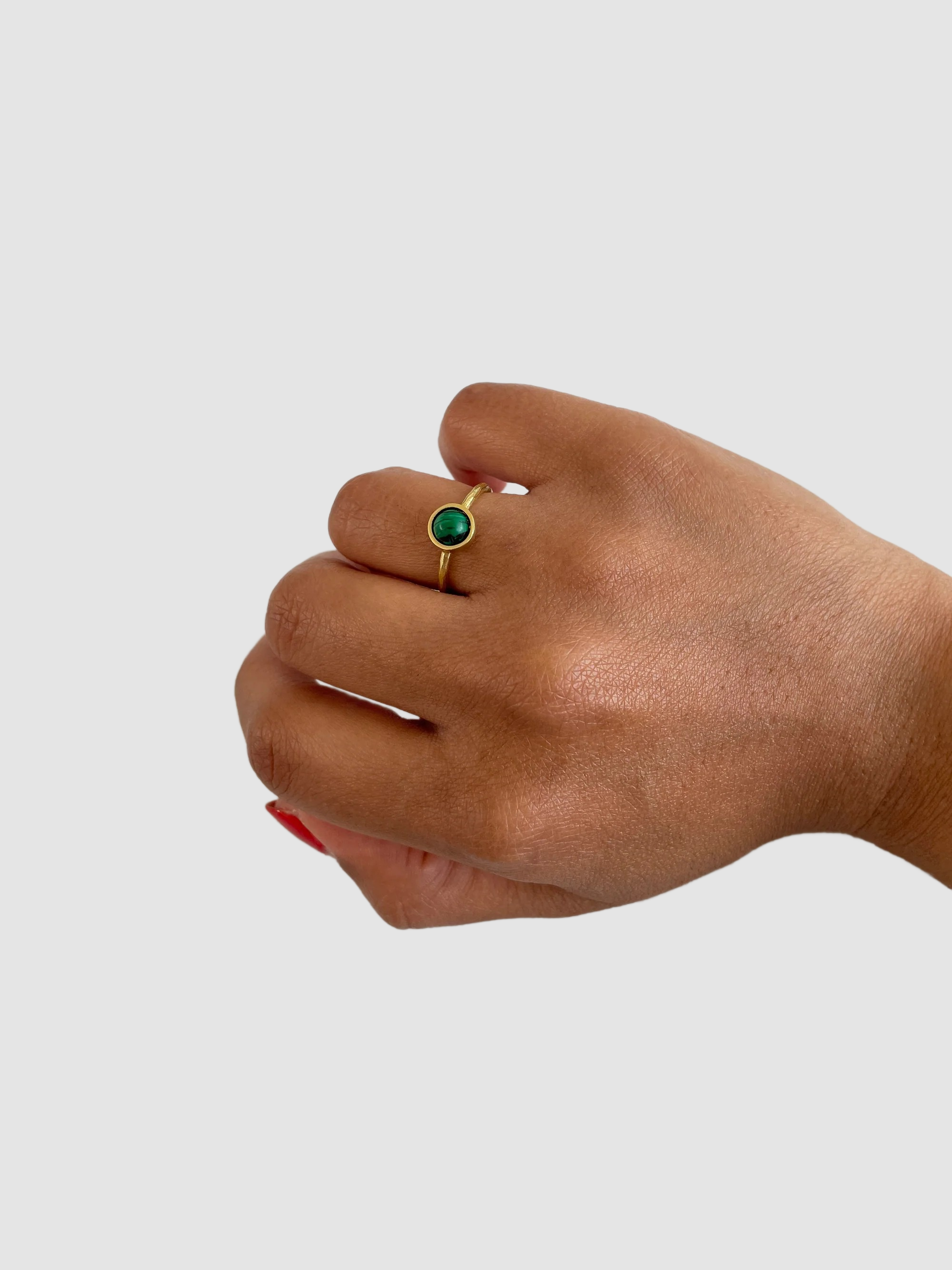 Elevate your style with our Gold-Plated Adjustable Ring featuring a stunning green gemstone. This exquisite piece combines the timeless elegance of gold with the vibrant allure of green, creating a versatile accessory perfect for any occasion.