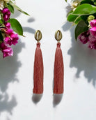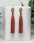 - Materials: Pink fringe, gold-plated cowrie.