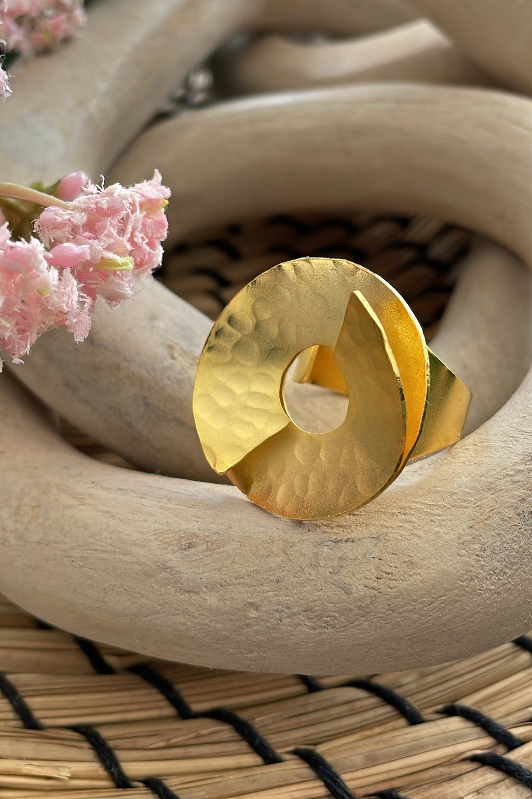 Made to dazzle your hands, our Aura Ring is a creation that promises both versatility and grit. Its metallic texture and earthy folds make the ring beautifully sculpted and complement any hand.