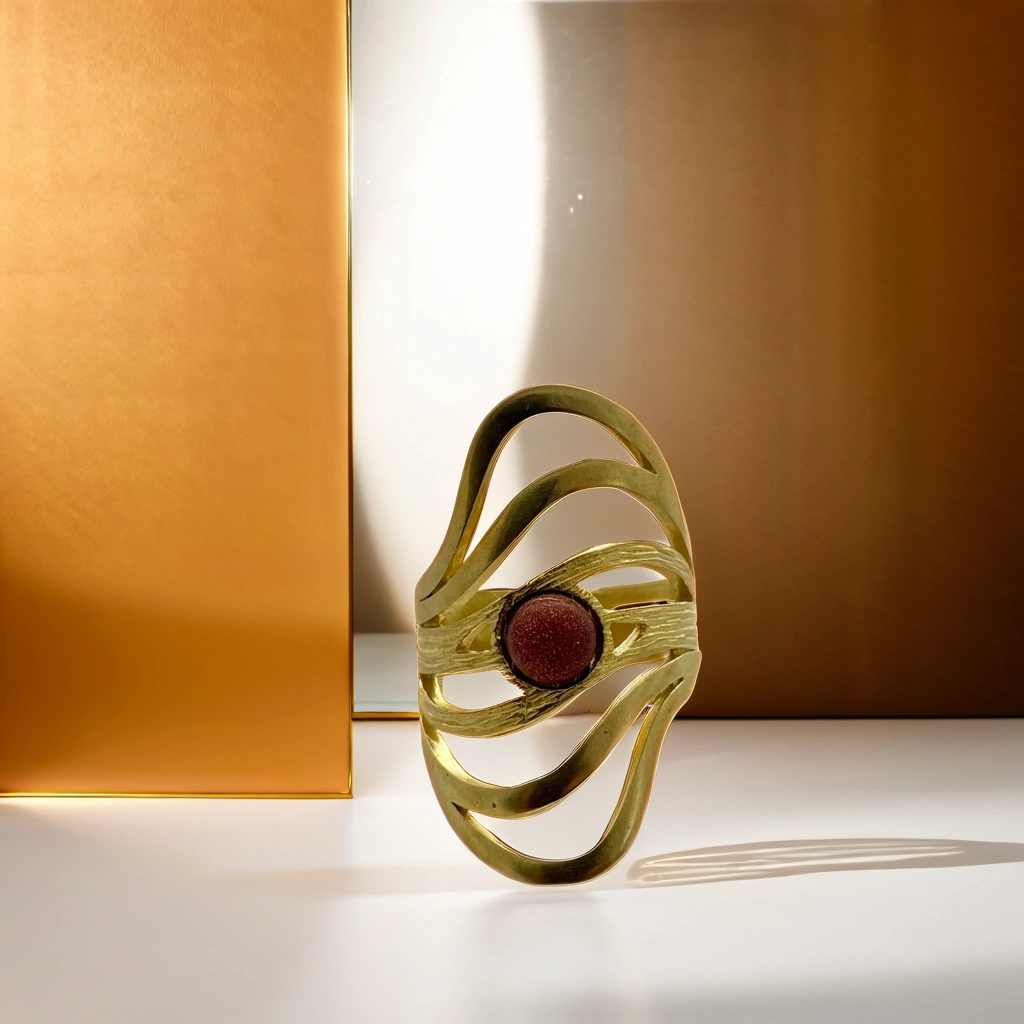 Elevate your style with our Gold-Plated Adjustable Ring featuring a stunning brown gemstone. This exquisite piece combines the timeless elegance of gold with the vibrant allure of brown, creating a versatile accessory perfect for any occasion.